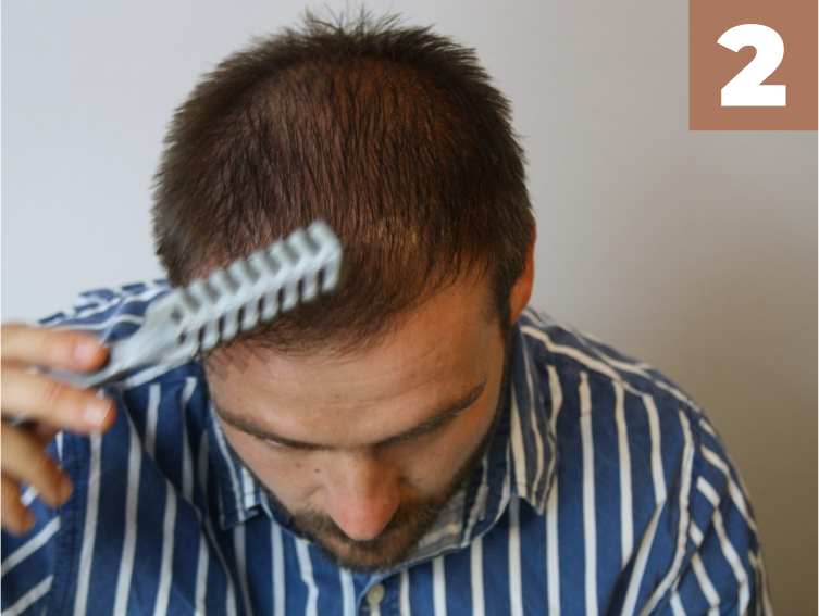 - For areas at the back of the head either apply the fibers with your head down – or use a hand held mirror to see.