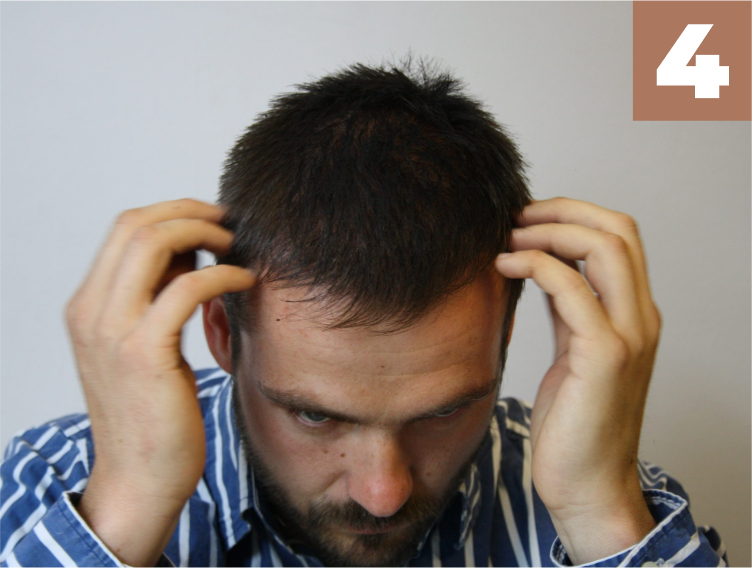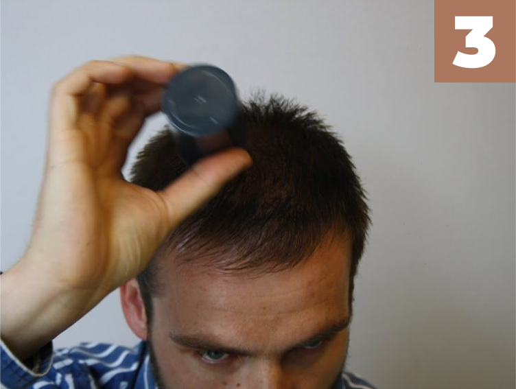 - When applying to the front area of your head, protect your eyes by using your hand as a shield below the hair line.